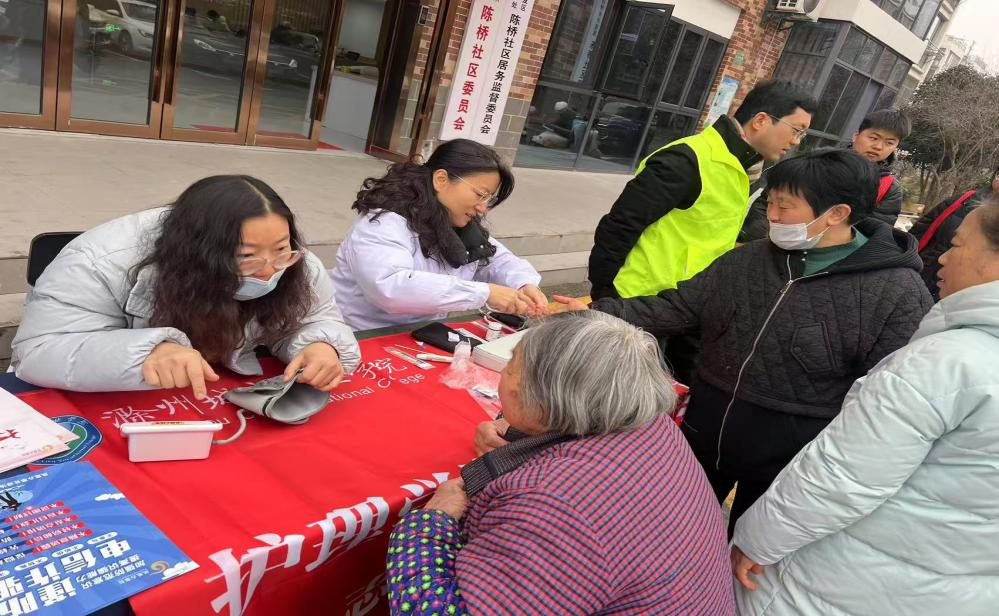 活动现场,教工党支部的党员教师与学生志愿者们早早搭起义诊台,有序为居民提供健康检查,涵盖血压、血糖测量等项目。针对测量结果,党员教师结合护理专业特长耐心答疑解惑,给出专业护理建议和日常保健方案。对于患有慢性病的老人,党员教师还特别叮嘱用药注意事项与饮食调理方法,细致入微的关怀让老人们倍感温暖。