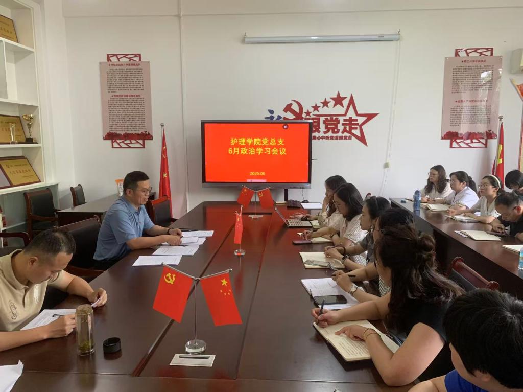 6月5日,护理学院党总支在仁德楼党员活动室召开6月政治学习会议,会上集中学习了习近平总书记的重要文章《加快建设教育强国》、《八项规定改变中国》、《党的十八大以来深入贯彻中央八项规定精神的成效和经验》等材料。会议由护理党总支书记席民主持,护理学院全体党员教师参会。