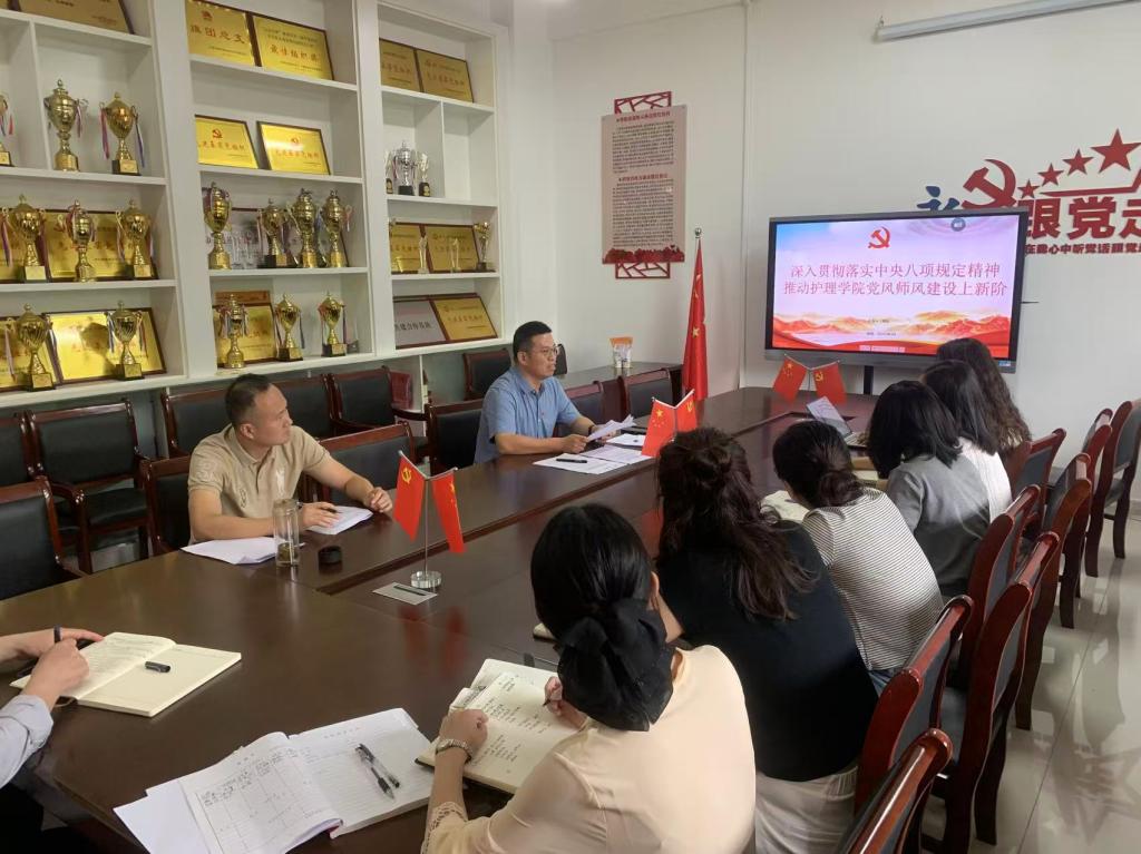 为深入贯彻中央八项规定精神学习教育,进一步强化纪律意识,继续在常和长、严和实、深和细上下功夫,持续推动学习教育落实落地。6月4日,护理学院党总支书记席民在仁德楼党员活动室为全体党员讲授深入贯彻中央八项规定精神学习教育专题党课——《深入贯彻落实中央八项规定精神,推动护理学院党风师风建设上新阶》。