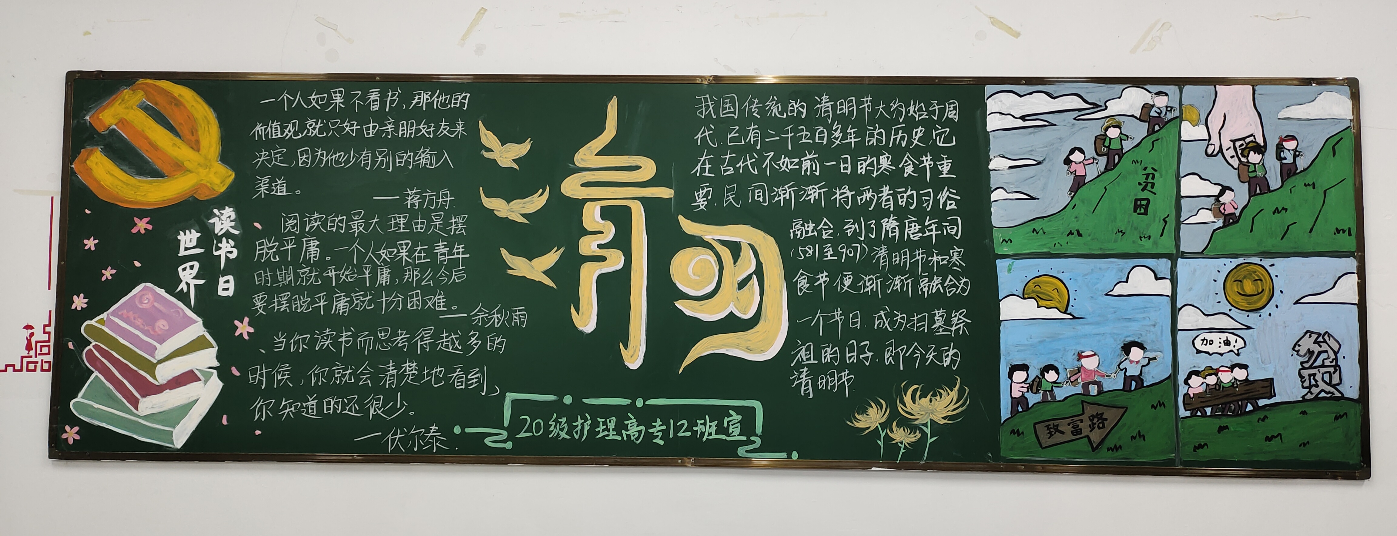 各班级也通过主题板报、手抄报的形式进行宣传先烈精神,一幅幅画卷再现革命英烈的英勇无畏,也寄托了同学们对先烈的崇敬和哀悼。