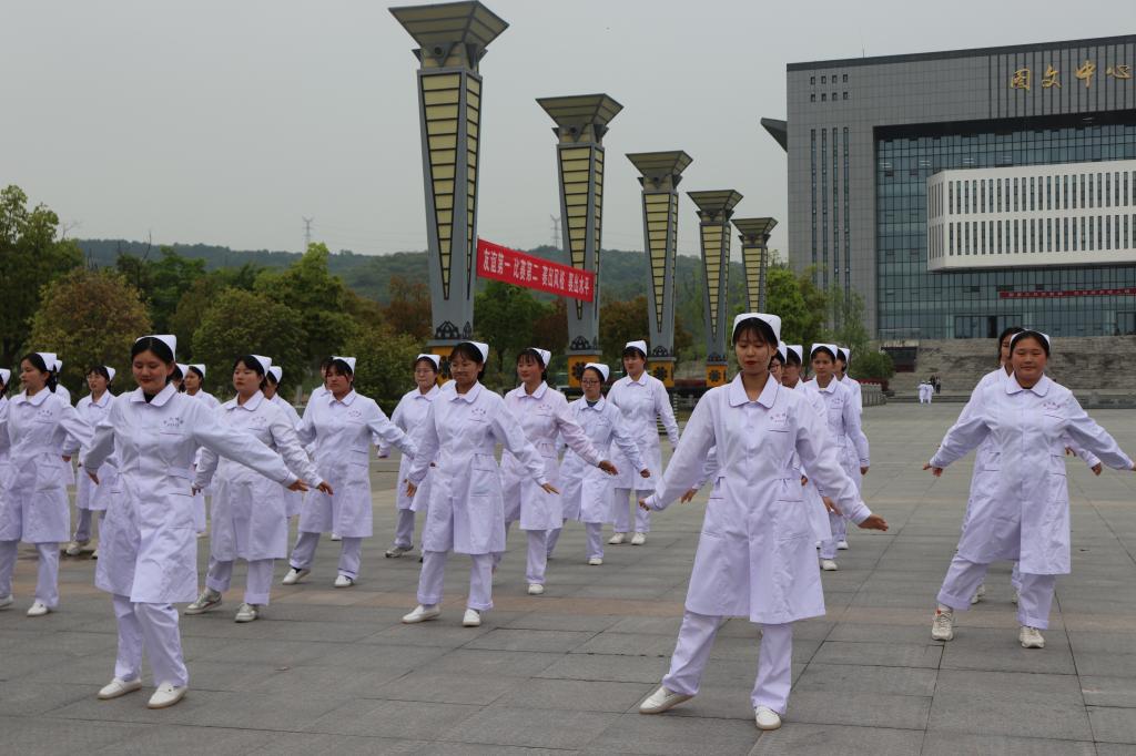 为庆祝中国共产党建党100周年,迎接“5.12”国际护士节的到来,彰显中华传统礼仪文化的时代价值,提高我系青年学生护士职业礼仪素养,进一步强化校园文明礼仪之风,4月21日下午,护理系第四届天使文化节之护生礼仪操和洗手操比赛在图文中心南广场举行。护理系20级全体学生参加比赛。