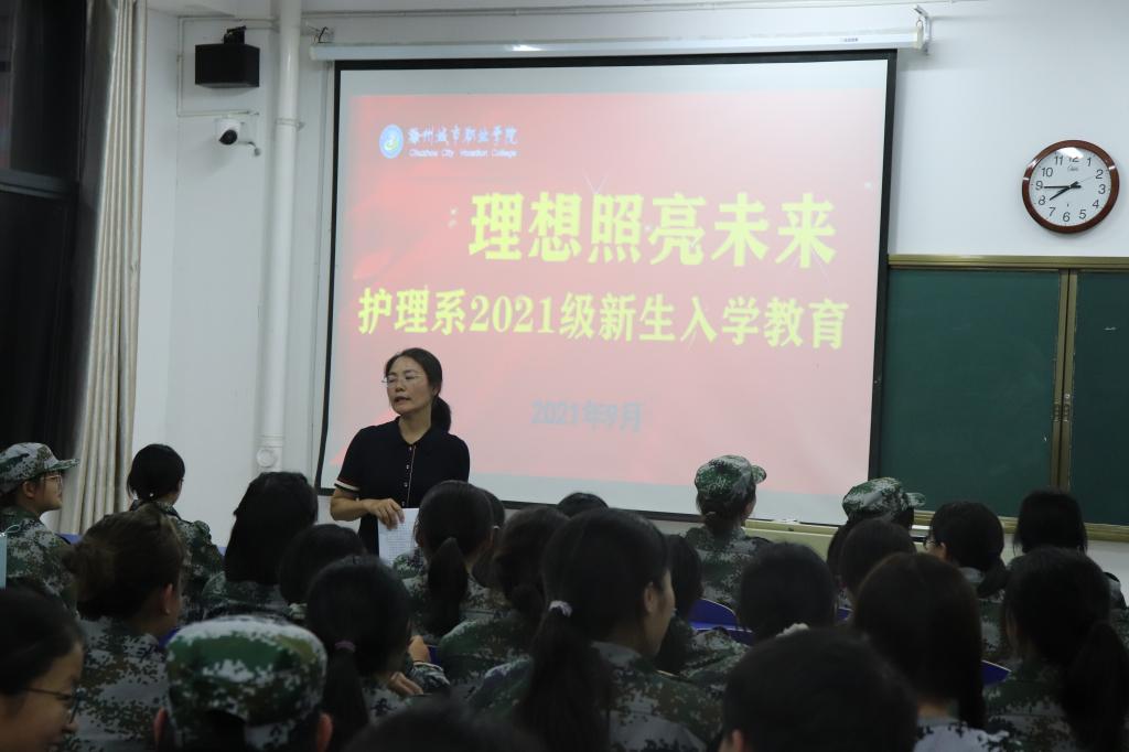 为深入学习习近平总书记“七一”重要讲话精神,落实立德树人根本任务,培养学生爱党爱国爱岗情怀,使2021级新同学更加充分了解学院和护理系,熟知护理、助产、老年保健与管理专业的情况以及系部学生管理制度和团学工作,加深学生的专业认同感,护理系于9月14日晚,在第二学术报告厅及各分会场为2021级新生召开了主题为“理想照亮未来”的入学教育,会议由护理系党总支副书记朱启来主持,护理系党总支书记蔡季秋,系副主任左晶晶,学管秘书卢齐伟、李勋华,团总支书记王艳,新生班级辅导员(班主任)以及护理系2021级全体新生参加会议。