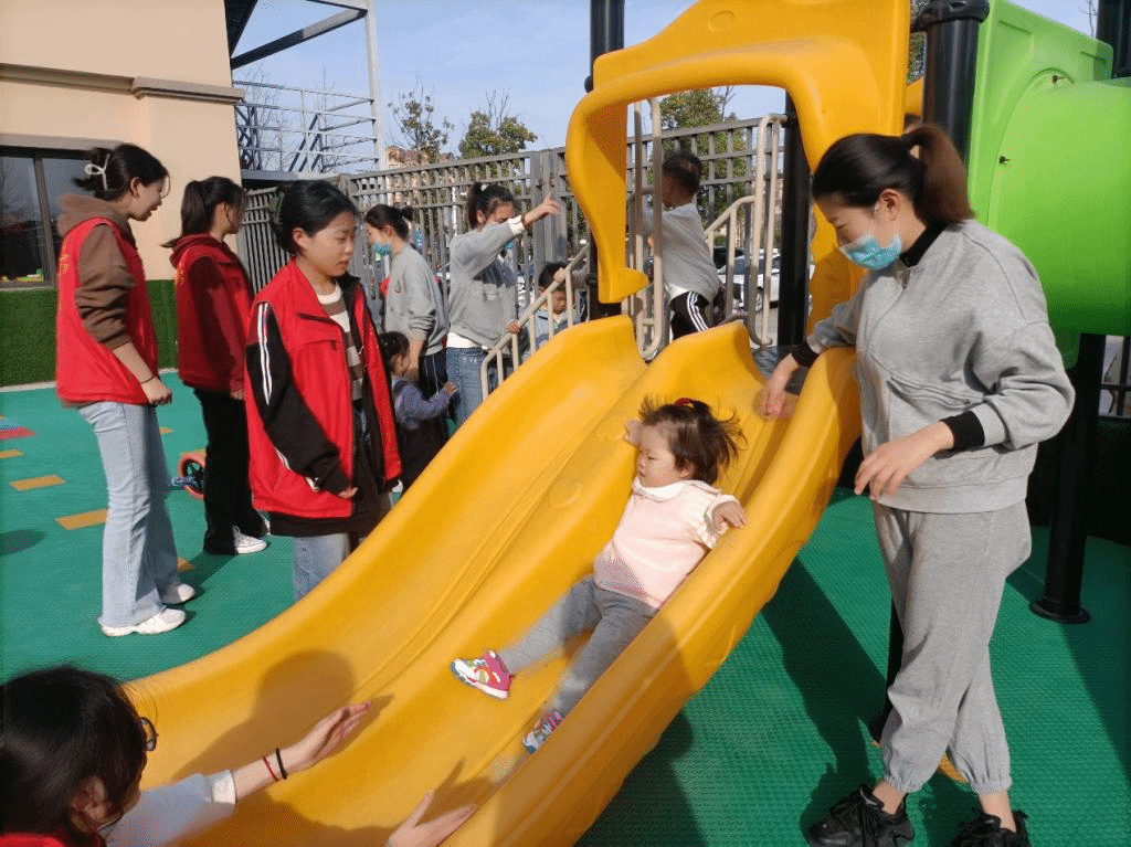 观摩学习期间,安排每位学生托育园小朋友们按照“一托一”模式形成结对。托育园当日下午课程主要为感统训练通过趣味吹纸条”,培养幼儿的专注力和控制力,并可增强幼儿的肺活量。