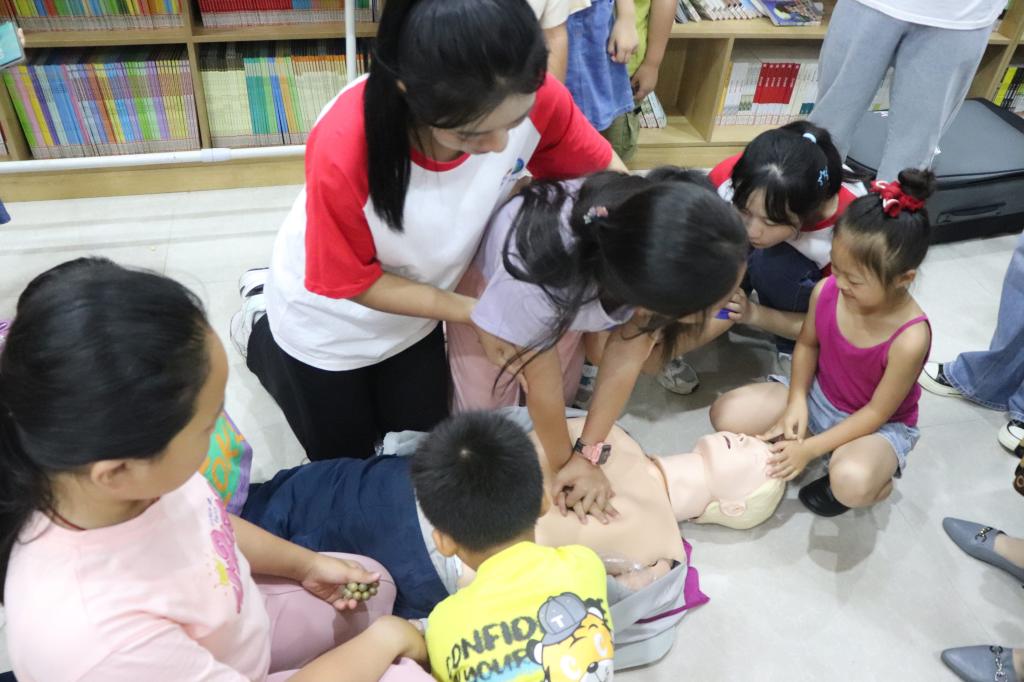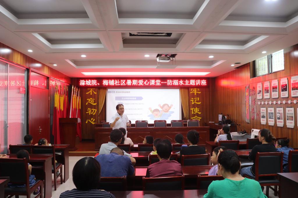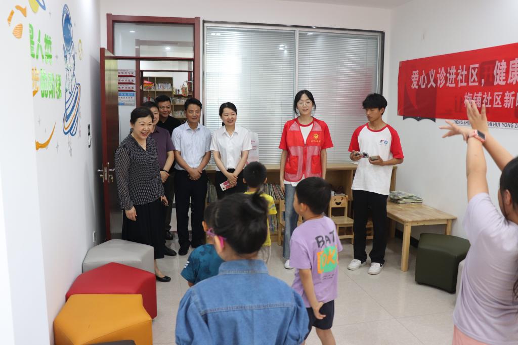 张志华一行在梅铺社区季凤的引导下参观了梅铺社区科普馆、文化室、党群活动中心等,现场观看了防溺水和溺水后急救的主题讲座、防溺水宣传的手势舞;在社区广场慰问了健康义诊的志愿者师生。