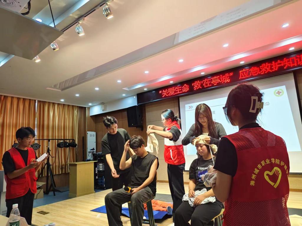 为普及应急救护知识,提高大学生应对突发事件自救、互救能力,8月31日,滁州城市职业学院红十字工作站选派培训教师前往滁州职业技术学院开展“关爱生命,‘救’在亭城”的应急救护知识培训,200多名学生参加了培训。