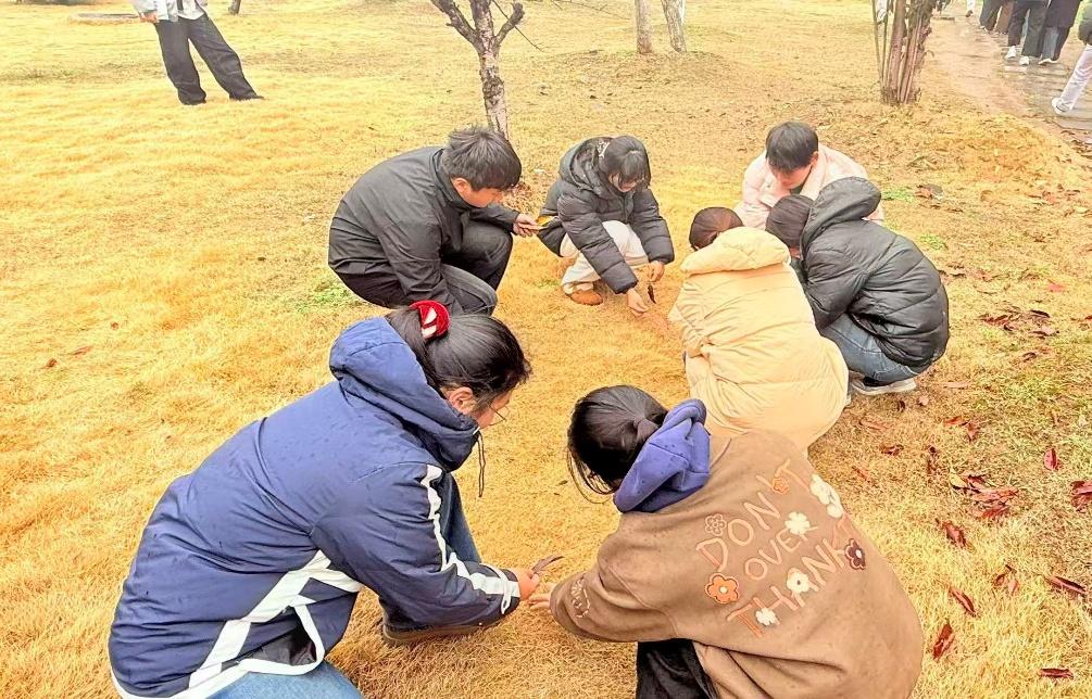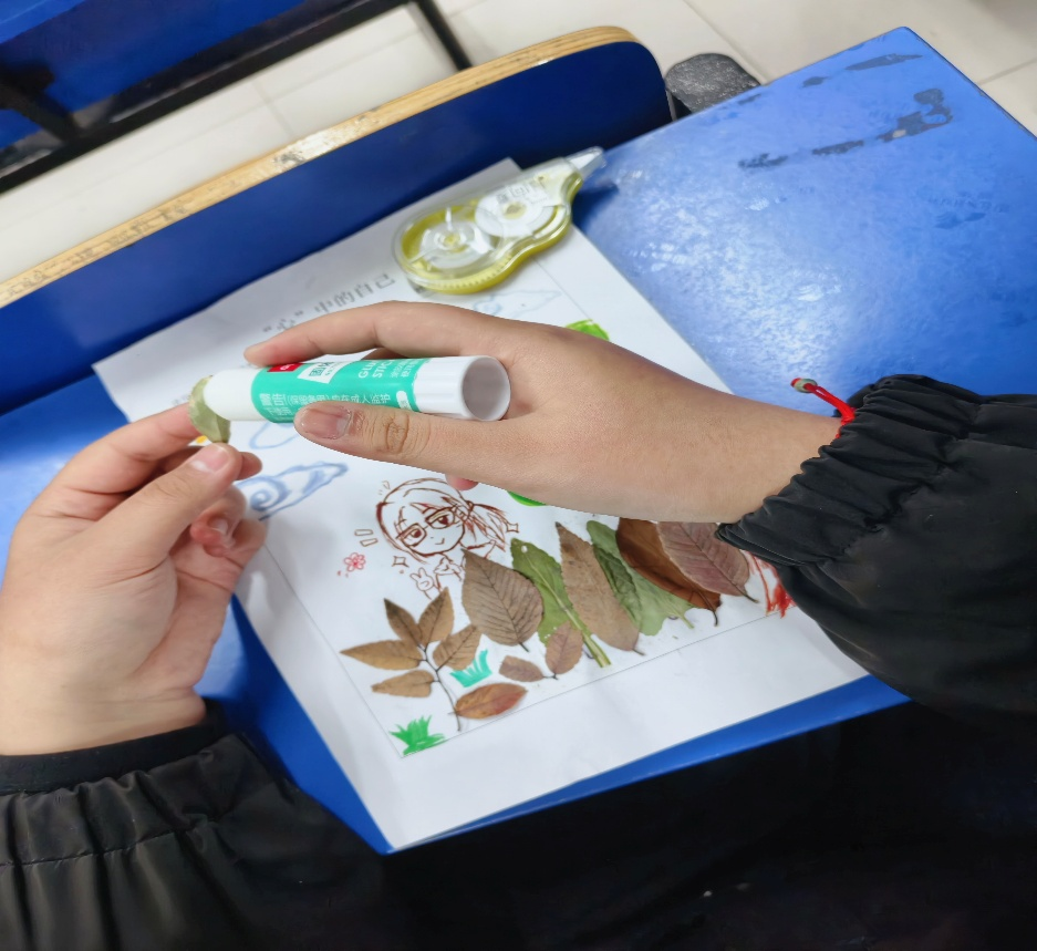 活动中,同学们分组来到校园各处,在林荫道旁、草坪之间俯身捡拾落叶。大家仔细观察不同植物的叶片形态与纹理特征,在收集过程中增长植物知识,增强环保意识。形态各异的落叶被一一收集起来,成为后续创作的素材。