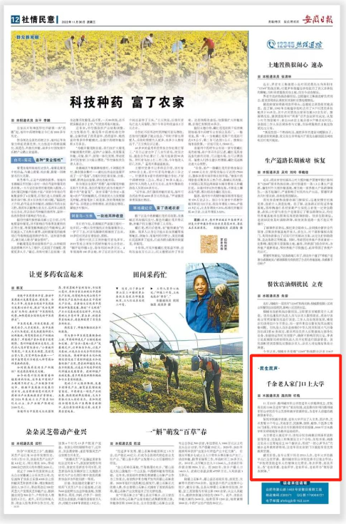 11月30日,《安徽日报》纸质版第12版刊登了我校老年大学开展盛况:标题:《千余老人家门口上大学》11月23日,滁州城市职业学院老年大学揭牌成立,首批报名的1188名老年“新生”重返校园,这是滁州市利用滁州城市职业学院的专业优势和教学资源特长,为老年人搭建的教育服务平台。依托学院教学资源,老年大学开设了人文类、医护类、艺术类等13个专业,共有茶艺、民族舞、钢琴、瑜伽、中医养生等16门课程,学校30余名专职教师面对...