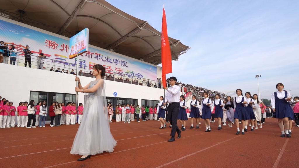 伴随着激昂的《运动员进行曲》,校旗会徽护卫队、运动会展板方阵、彩旗方阵依次通过主席台接受检阅。他们步伐矫健整齐,动作铿锵有力,向师生们展示了城院学子英姿飒爽的风采。随后,由各学院代表队组成的表演方阵依次入场,他们的入场构思巧妙,结合专业特色融入中国传统文化元素,铿锵的步伐与精彩的表演赢得了全场热烈掌声!