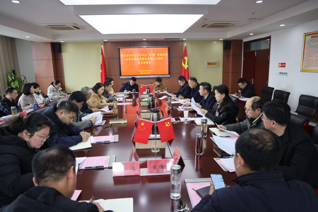 3月18日下午,适逢习近平总书记在学校思想政治理论课教师座谈会上重要讲话五周年之际,党委副书记、校长汪上主持召开专题座谈会,重温习近平总书记“3.18”重要讲话精神,并调度推进马克思主义学院建设。校领导牛春雨、曹士东、池鹏、徐云川、陈通出席会议,教务处、总务处、财务处、科技处、团委、实验实训中心、质量管理中心负责同志,马克思主义学院党政班子及部分思政课教师代表参加会议。