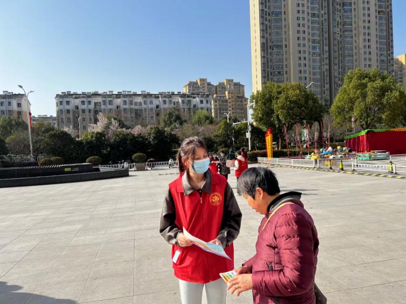 志愿者走进社区发放宣传资料,普及结核病防治知识