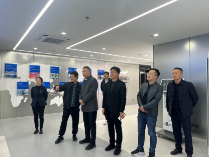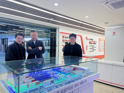 在苏州艾隆科技股份有限公司,董事会秘书朱锴向王燕永一行展示了智能医疗物资管理领域的新成果,并就校企合作、实训课程建设、智能时代人才培养等方面进行深入交流。