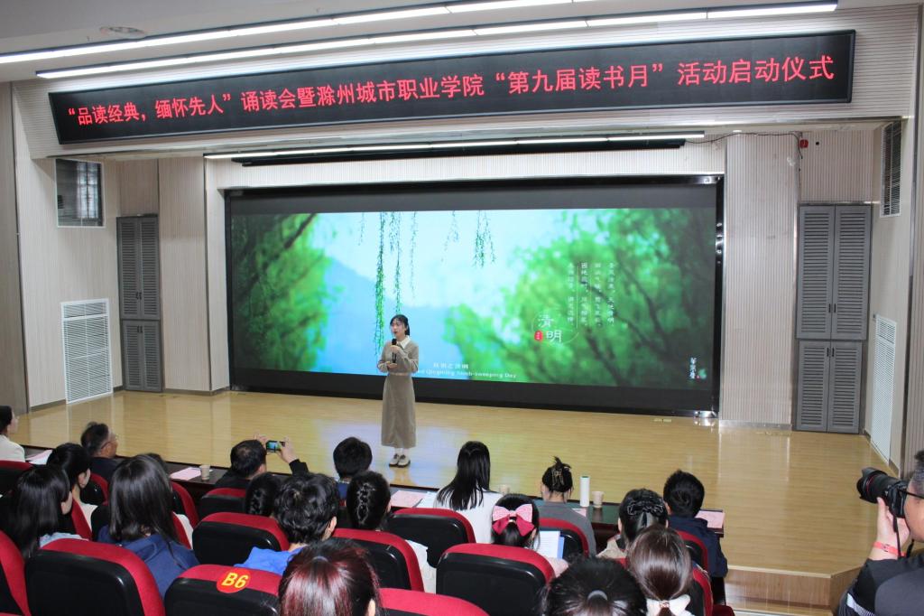 为迎接第29个世界读书日,营造浓厚的读书氛围,不断深化“书香城院”建设,4月2日下午 ,“品读经典,缅怀先人”诵读会暨“第九届读书月”活动启动仪式在图文中心四楼报告厅举行。校党委委员、副校长曹士东,学生处和团委负责人,五院副书记及200多位学生代表参加了活动。