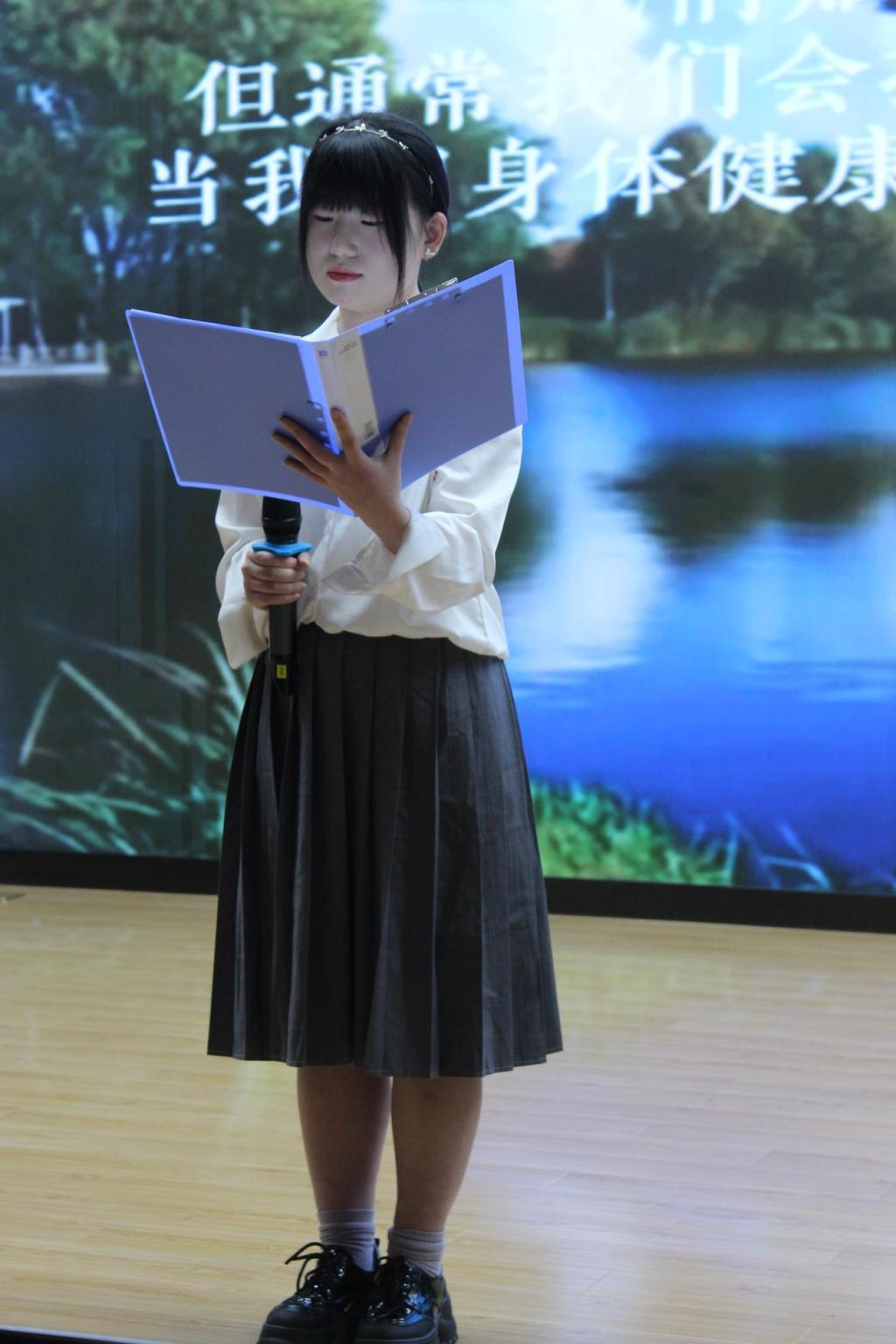读者协会张玉等同学用英文朗诵《假如我有三天光明》,启迪我们学会珍惜一点一滴、分分秒秒的光明,热爱生活。
