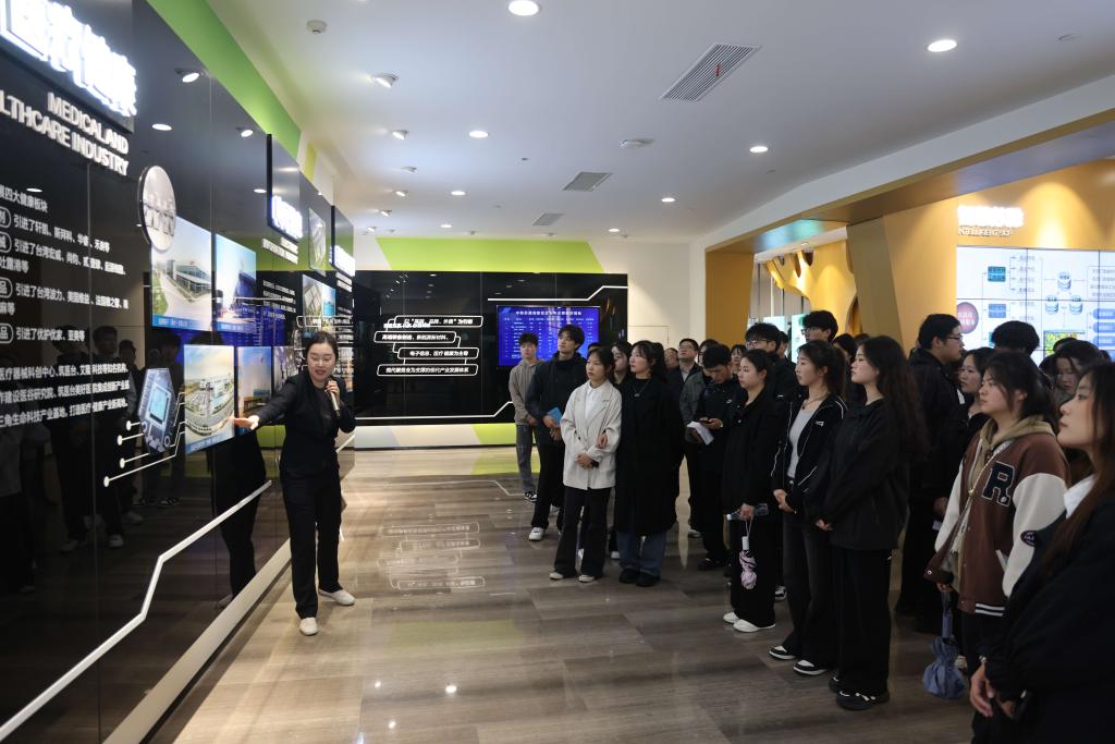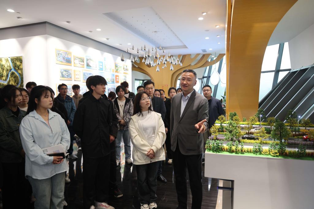 在中新苏滁现代产业园规划馆,王燕永一行听取了园区建设背景、目前建设情况和未来发展规划的情况介绍。王燕永指出,滁州作为安徽东向发展的“桥头堡”,同时也是南京、合肥两大都市圈的“双圈籍”城市,坐拥天时地利人和,正处于厚积薄发、动能强劲、大有可为的上升期和关键期。苏滁现代产业园作为苏州工业园区走出江苏省合作共建的首个项目,是安徽省参与长三角互利合作、承接国内外产业转移、提升皖江示范区建设水平的重大成果,未来发展空间十分广阔。希望各位同学能够通过本次活动,进一步的认识滁州、了解滁州、热爱滁州、留在滁州,成为滁州“宣传员”,为滁州的发展建设贡献力量。