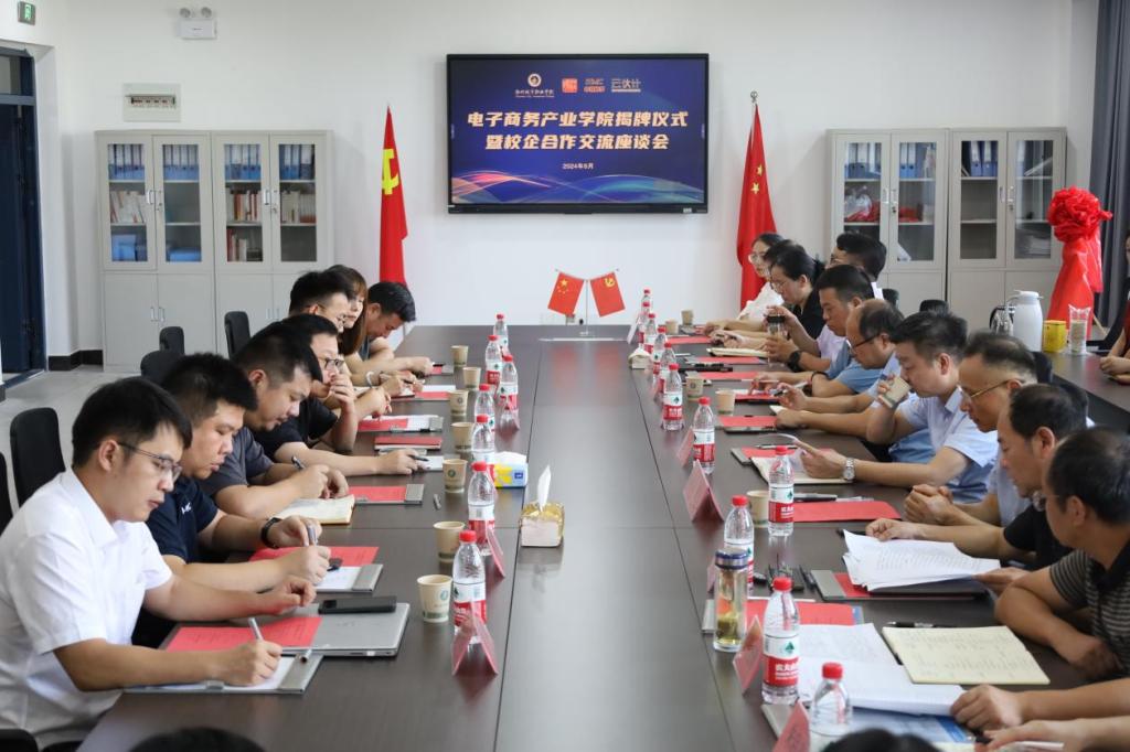 在欢快的音乐氛围中,校领导与企业代表共同为电子商务产业学院揭牌,我校电子商务产业学院正式成立。下一步,学校将以省级现代产业学院建设为契机,聚焦电子商务专业人才培养,创新校企合作模式和运行机制,共同制定人才培养方案,共同开发课程标准和教学资源,共建校企实习实训平台,建立校企人才双向流动机制,推进大学生创新创业教育,搭建产学研服务平台,力争建成特色鲜明的现代产业学院。(图:王巧,文:胡海敏,初审:陈兴旺,复审:张秀梅,终审:刘亮)