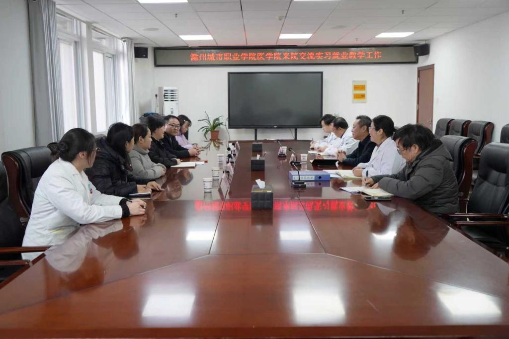 在访企拓岗环节,医学院一行与明光市人民医院党委书记阚乃功、科教科负责人及临床带教骨干举行专题座谈会。会上,阚乃功详细介绍了医院的发展规划、临床教学体系建设、实习带教安排及近年来接收我院实习生的培养成效,对我院学生在实习期间展现的专业素养和务实作风给予高度评价。左晶晶对医院长期以来为学生提供优质实践平台、悉心落实带教责任表示衷心感谢,围绕学院专业建设、人才培养方案优化、实习教学质量提升等内容作了详细说明,并提出深化校企合作的具体建议。双方就共建实习实训基地、联合开展教学改革、拓宽就业合作渠道等议题深入探讨,达成共识,明确将建立常态化沟通机制,推动医教资源共享、优势互补,共同培养适应临床需求的高素质医学人才。