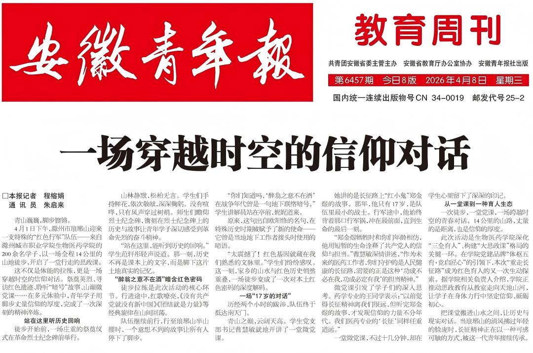 4月1日下午,滁州市琅琊山迎来一支特殊的“红色行军”队伍——来自滁州城市职业学院生物医药学院的200余名学子,以一场全程14公里的山地徒步,开启了一堂行走的思政课。