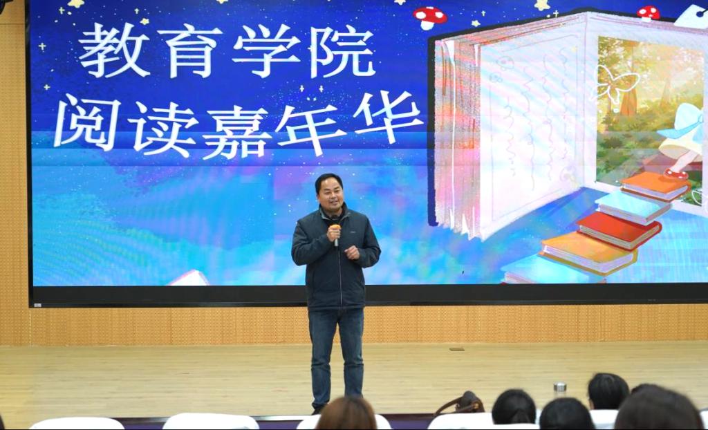 教育学院党总支书记刘亮作总结发言,他希望同学们以此次活动为新起点,坚持阅读、勤于思考,切实把阅读习惯带进班级、融入日常,助力学院思政工作与学风建设再上新台阶。