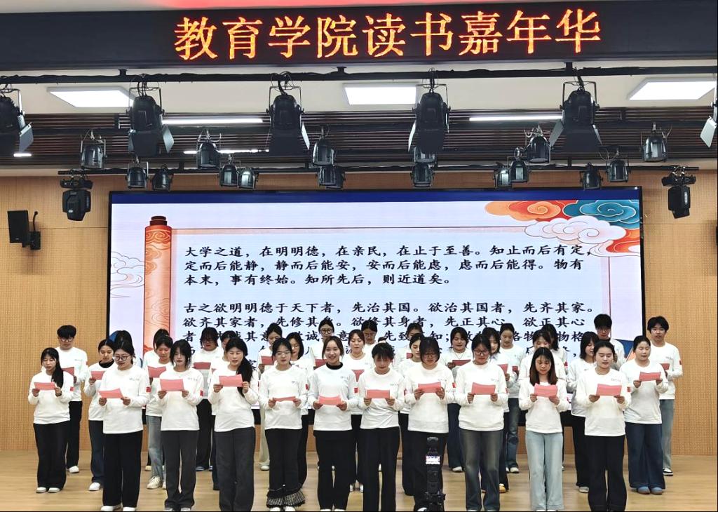 本次活动紧扣“阅读+思政”核心主题,以“思享者・阅历人”为理念,创新打造“经典诵读、趣味互动、共读沙龙、阅读倡议”四位一体的沉浸式阅读体验,是教育学院将文化育人、实践育人与思政育人有机结合的创新探索和重要实践。