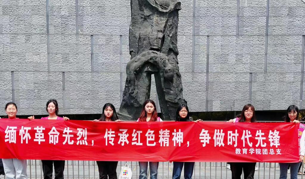 在清明节来临之际,教育学院团总支组织学生前往侵华日军南京大屠杀遇难同胞纪念馆祭奠英烈。