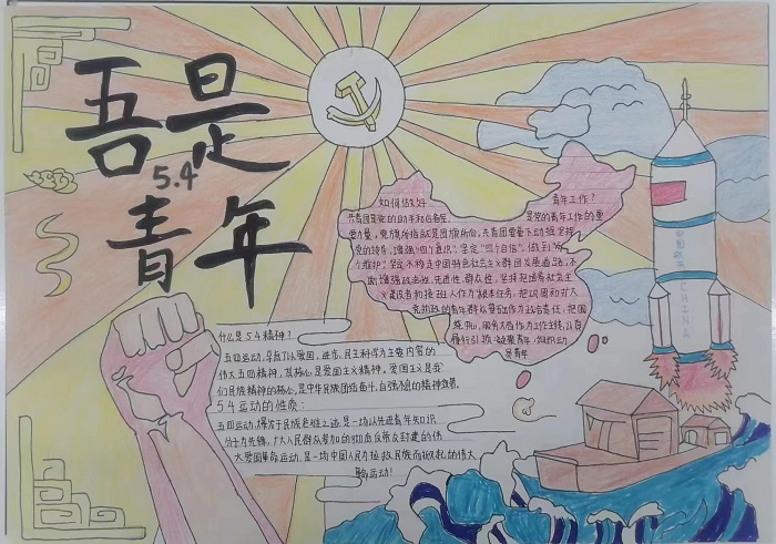 医学院组织开展了五四系列活动之“五四精神,传承有我”主题手抄报活动,一张张绚丽的手抄报,画出的是一抹抹中国红,承载的是一个个强国梦,同学们在作品中表达着意气风发的精神面貌和强烈的爱国主义情怀。本次活动引导了同学们传承五四精神,并对青春当奋进,青春需早为有了深刻理解,也更加坚定了同学们为祖国发展添砖加瓦的信心和决心。
