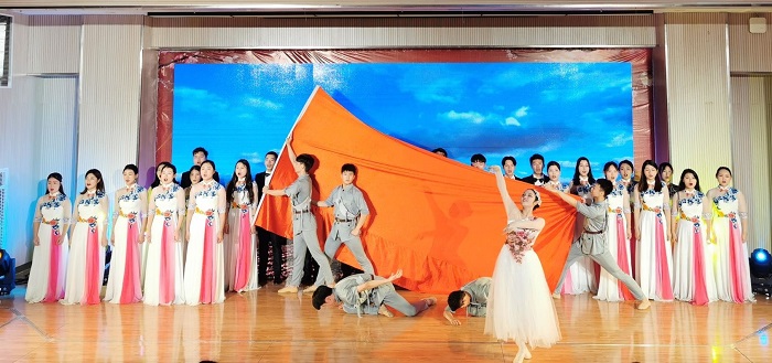 朱德顺在致辞中表示,今年适逢中华人民共和国成立70周年,在全党全国上下认真学习习近平新时代中国特色社会主义思想和第二批“不忘初心、牢记使命”主题教育开展之际,淮北师范大学“高雅艺术进校园”演出团队来到滁州城市职业学院,交流艺术教育成果,共同表达喜悦的心情。淮北师范大学将以此次演出为契机,进一步加强与滁州城市职业学院的交流与合作,共同推进校园文化艺术建设,为科教兴国、高教强省、服务地方经济社会发展和建设五大发展、美好安徽做出积极贡献。