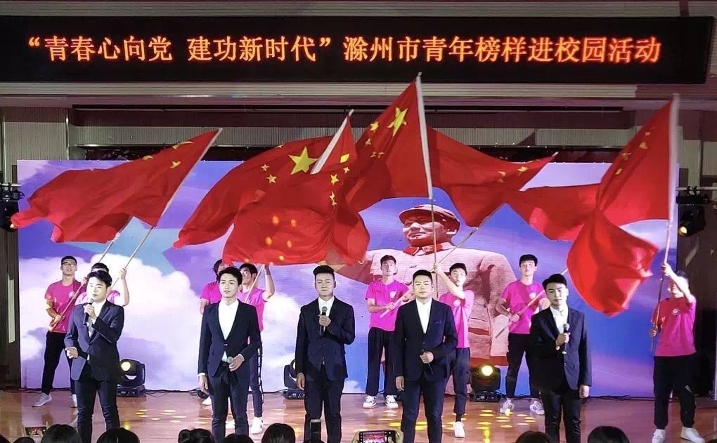 为树立典型,增强对学生的榜样教育,在全院学生中创设积极向上的学习氛围,激发学生勇于争先的进取精神,11月20日,“青春心向党 建功新时代”滁州市青年榜样进校园活动”在我院四楼报告厅隆重举行。学院党委副书记牛春雨、团市委副书记魏倩霓、基础部主任何大海、市委宣传部宣教科科长马其平、团市委宣传部部长张勇、教体局团工委书记郝艳艳、院团委书记周慧、团委副书记徐昌灿以及我院师生代表300余人共同观看了本次活动。