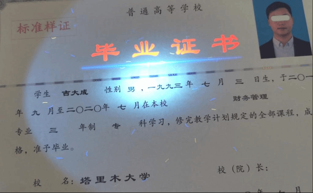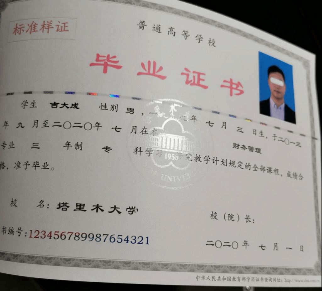 第六色-—UV印刷银白色塔里木大学logo;证书居中位置迎光不可见,测光可见光亮水印图案