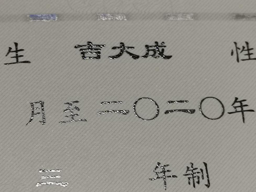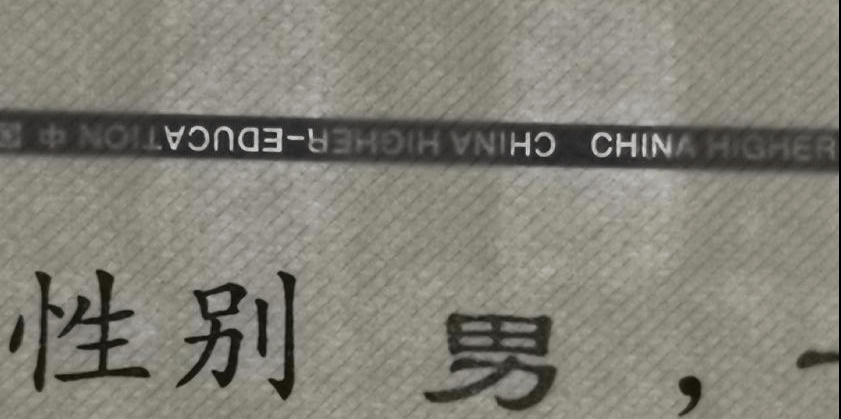 毕业证书制有镂空微缩(透光可见)文字“高等教育”中英文激光镭射安全线