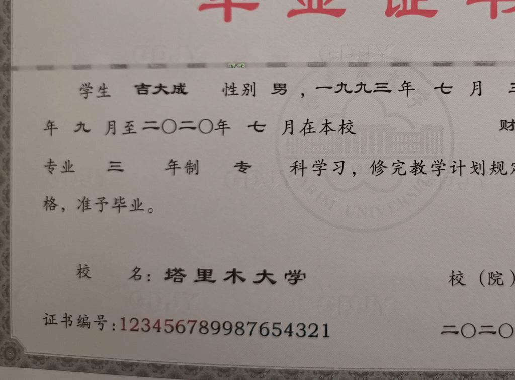 第六色-—UV印刷银白色塔里木大学logo;证书居中位置迎光不可见,测光可见光亮水印图案
