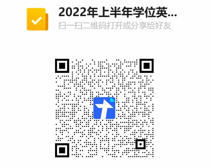 1.未参加过该项英语在线考试的新考生,须在2022年1月12日至2月28日期间,扫描下方二维码,填写本人相关信息,每人限填一次(可修改)。信息采集结束后,主考院校会在2022年3月初完成信息核对及注册。注册完毕后,考生即可在安徽继续教育在线网站进行学位英语报名操作;新用户名为身份证号码,登录初始密码为其身份证号码的后六位(数字或字母)。