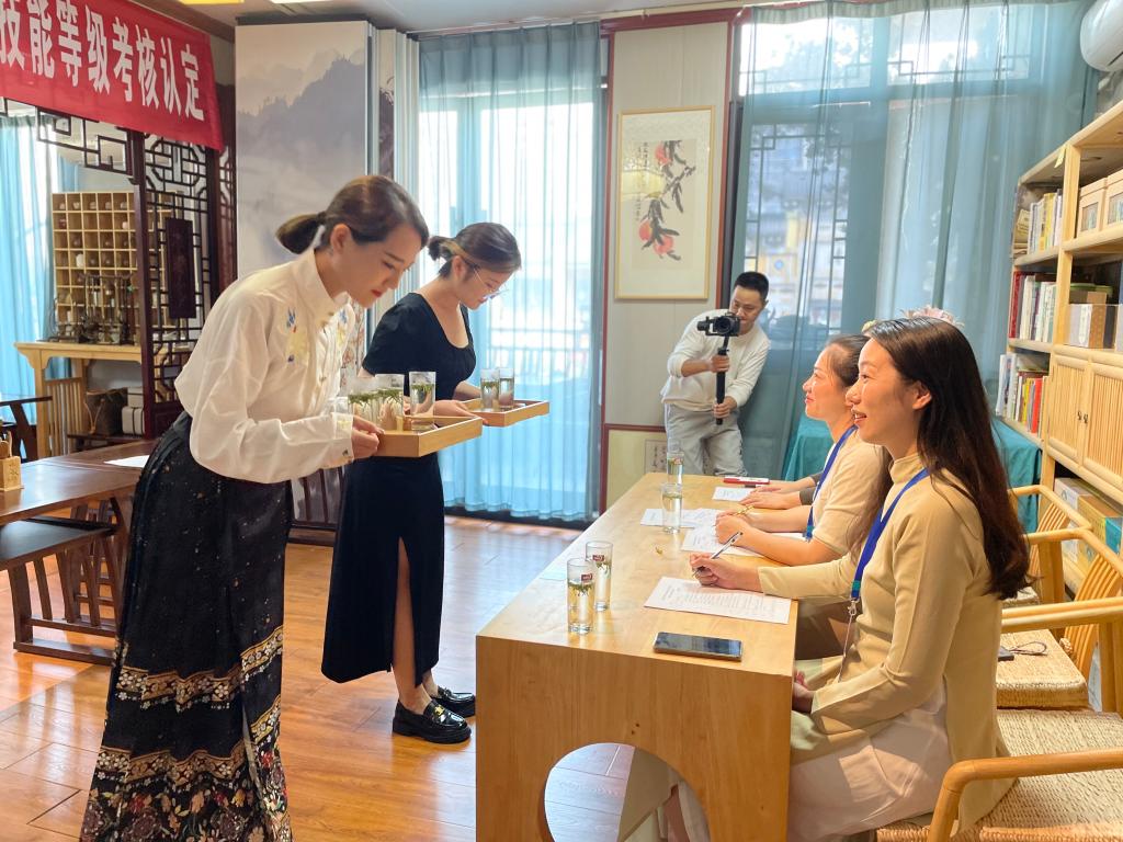 为进一步促进滁州市茶行业健康发展,提升茶文化发展和传播,9月23日,我校组织开展职业技能等级考核认定工作,本次共11人参加考核认定,认定工种为茶艺师,认定等级为4级(中级工),认定地点在与我校联合开展茶艺师培训的富苑茶社。校党委委员、校领导施向阳,市人社局鉴定中心主任姜梦莲、继续教育学院院长许梅参加巡考。
