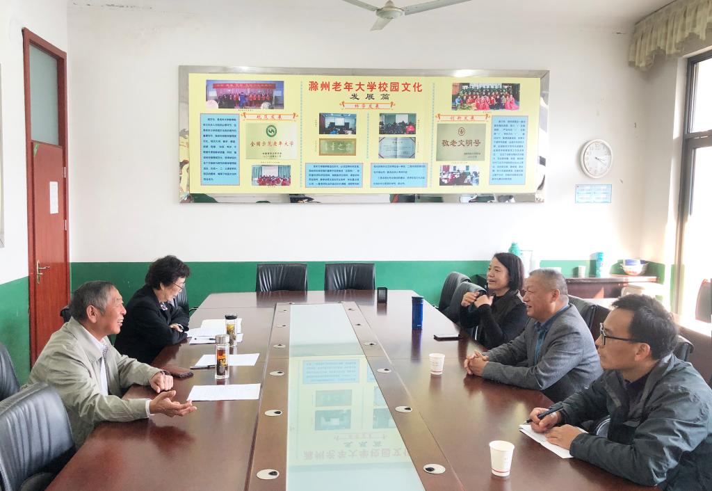 为贯彻落实《安徽省政府“暖民心行动方案”》和《安徽省教育厅等五部门关于加快推进老年大学(学校)建设的通知》要求,建立健全滁州城市职业学院老年大学工作体系,促进老年大学高质量发展,10月12日下午,我校党委委员、校领导施向阳带领继续教育学院院长许梅、副院长孟红军一行赴市老年大学调研交流。市老年大学校长张尽忠、常务副校长施芝华接待了施向阳一行。