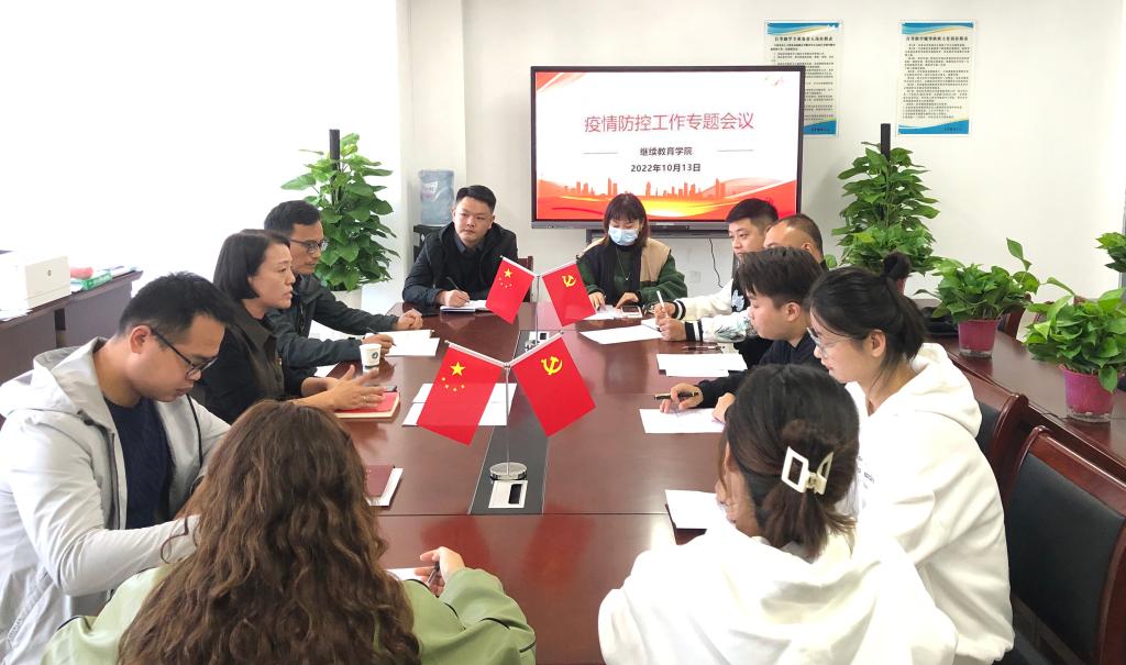 为进一步做好校园疫情防控工作,强化专升本合作单位疫情管理,10月13日上午,继续教育学院在图文中心706室召开专升本合作单位疫情防控工作专题会议,院长许梅、副院长孟红军、工作人员蒋涛、各专升本合作单位负责人参加会议。