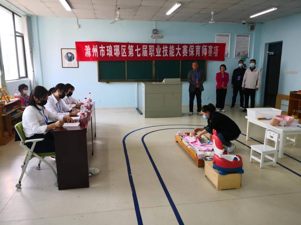 本次比赛由琅琊区人社局、区民政局、区总工会联合主办,由我校承办。在各政府部门的大力支持下,我校积极筹备组织比赛,根据有关要求,在赛前成立了大赛筹备工作小组,就赛场布置、赛事协调、赛事保障、赛事联络等工作进行周密部署和精心安排,并通过赛务工作会、赛场设备调试等多个环节完成备赛工作。