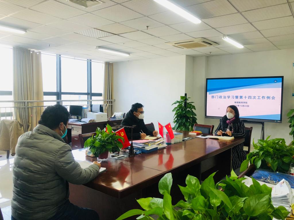 许梅指出,继续教育学院近期要切实做好滁州城市职业学院成人教育校外教学点申报、国际交流与合作项目推进、老年大学年度工作总结上报、自考终结性考试成绩汇总等工作。孟红军副院长强调, 鉴于当前疫情形势,为保障部门工作正常运转,本部门合理安排人员进校上班,其他人员居家办公。为准确掌握部门人员身体状况,如遇身体不适,应通过“健康上报”如实报告,并做好居家健康监测,确保落实疫情防控与保持日常工作正常运行。(文/图:熊欣桐 初审:马亚鸣 复审:孟红军 终审:许梅)