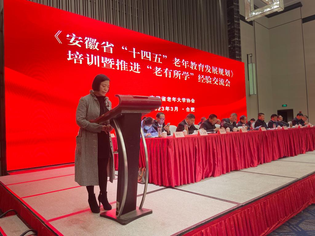 3月15日-17日,《安徽省“十四五”老年教育发展规划》培训暨推进“老有所学”经验交流会在合肥举行,我校继续教育学院院长、校老年大学常务副校长许梅代表学校参加,全省各市老年教育委员会负责人、老年大学校长、安徽省各高校老年教育工作负责人出席会议。