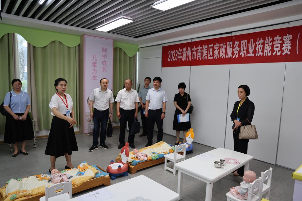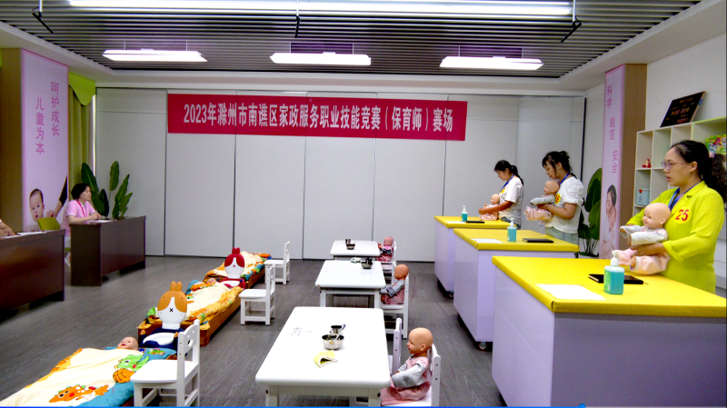为推进技工强省建设,进一步加强培养和选拔家政服务技能人才,促进从业者高质量就业,6月17日,2023年滁州市南谯区家政服务职业技能竞赛在我校举行,此次竞赛分为养老护理员、家政服务员、保育师三类,以理论知识竞赛和操作技能竞赛相结合的竞赛形式进行,来自全市130余名选手报名参赛。