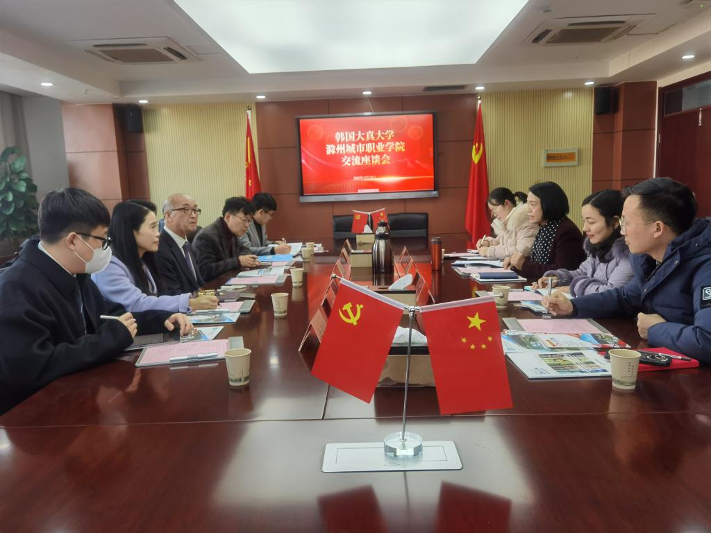 会议开始,许梅对韩国大真大学国际合作学院院长权瑚一行的到来表示热烈欢迎,对学校建设情况、教育教学发展、办学特色、专业设置等一一进行了讲解,并对学校当前国际交流与合作的开展情况进行了介绍。她指出,滁州城市职业学院专业配置全面、师资力量雄厚,我校期待与大真大学就师生学历提升、学生交流互访等方面,开展深度合作。