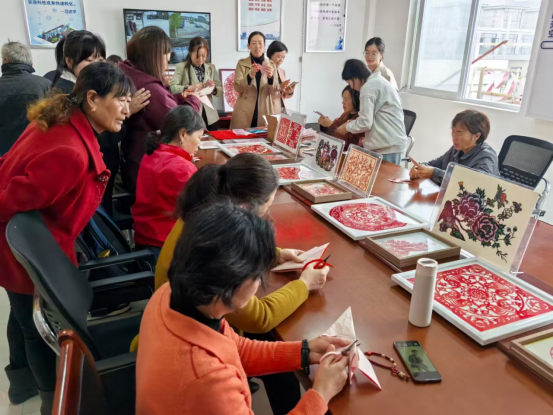 接下来是老年大学非遗课程教学及成果展演环节。刘晓玲、毛丽芳、王静、吴凤梅四位老师先后带来了凤画、凤阳花鼓、剪纸、舞龙等非遗课程教学。授课老师们将理论讲授和实践操作相结合,语言生动活泼,指导细致入微,充分带动了老年学员们的主动性与积极性,互动式教学方式让现场的学习气氛非常热烈。