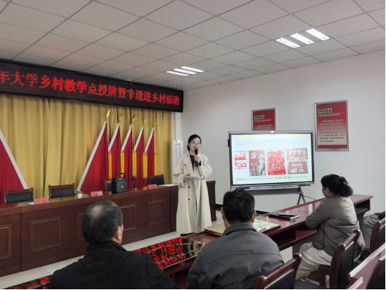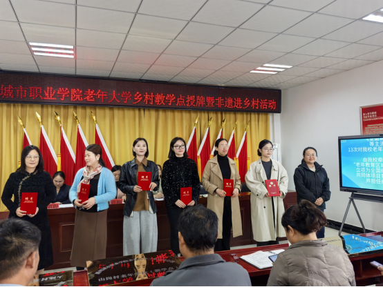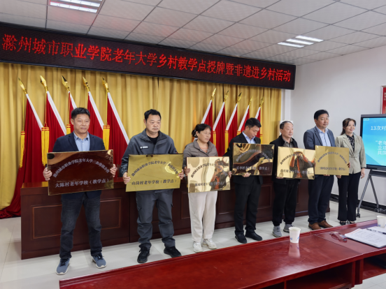为深入贯彻落实省委组织部等八部门《关于推进老年教育向基层延伸的若干意见》,加快推进我市老年教育向基层延伸,11月13日,“滁州城市职业学院老年大学乡村教学点授牌仪式暨非遗进乡村”活动在大陈村村委会隆重举行。滁州城市职业学院党委委员、副校长吴惠珍,三和集镇党委副书记、镇长黄远征,滁州城市职业学院继续教育学院院长、校老年大学常务副校长许梅等领导出席仪式,三和集镇各村主要负责同志、非遗团队师生及老年大学学员代表参加活动。仪式由大陈村驻村工作队队长、第一书记王旭主持。