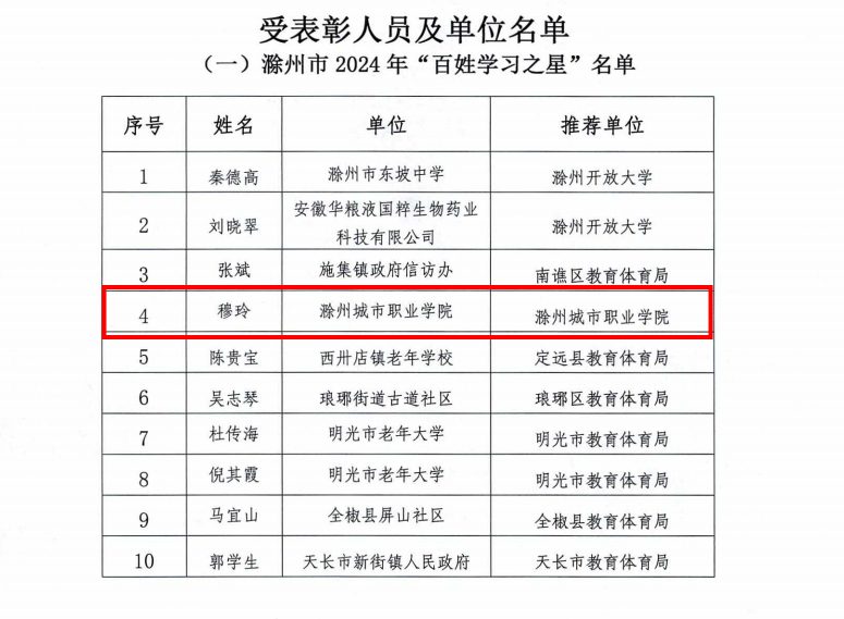 近日,在安徽省老年大学协会和安徽开放大学联合举办的“2024年老年教育优秀论文”评选活动中,我校老年大学教师王兴的论文《文化自信背景下非遗传统插花艺术融入老年大学艺术教育研究—--以滁州老年大学为例》荣获三等奖;在滁州市教体局2024年“能者为师——寻找社区好老师,建设美好新滁州”比赛中,我校老年大学任课教师刘晓玲、夏慧荣获一等奖,夏军军荣获二等奖;在滁州市教体局2024年“百姓学习之星”评选中,我校教师穆玲获评“百姓学习之星”荣誉称号。这一成绩的取得,充分展示了我校教师的专业素养和教学能力,同时也体现了我校在培养高素质老年教育师资方面的显著成效。期待我校教师能够继续发挥专业优势,为推动老年教育事业的高质量发展做出更大贡献。
