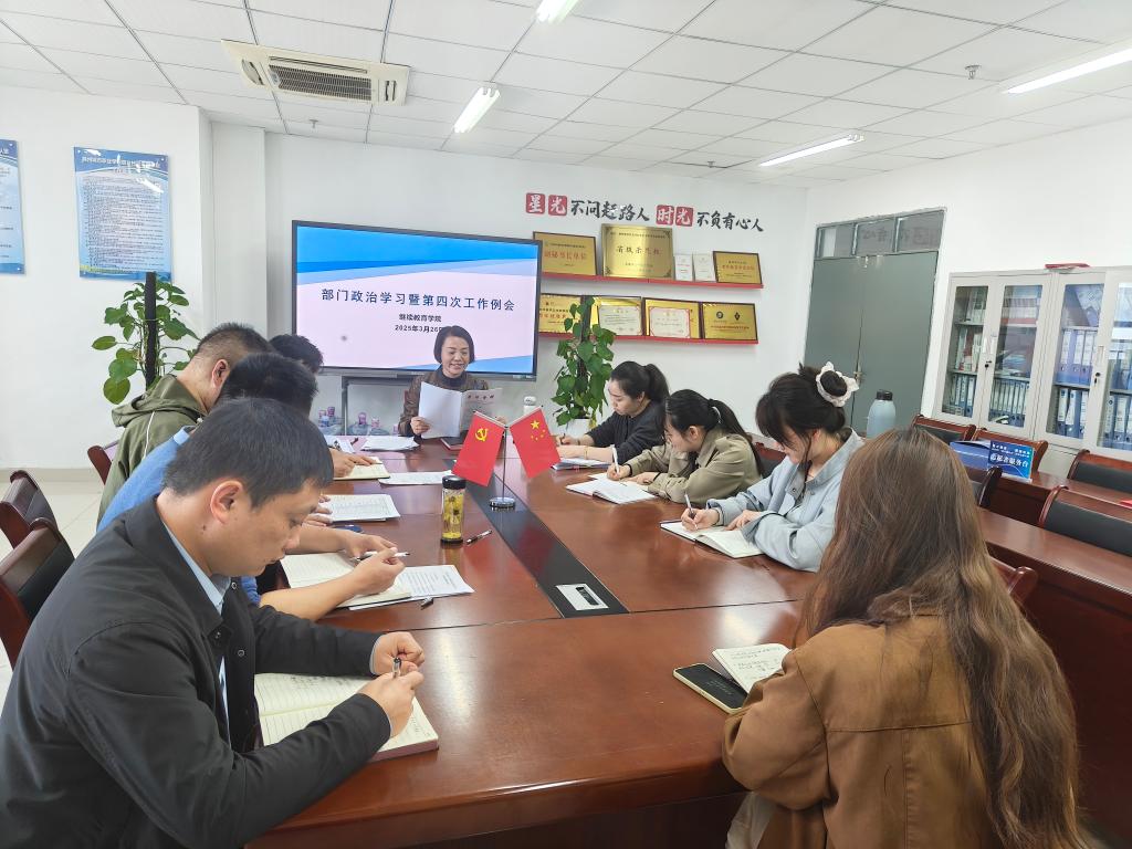 为进一步提升工作质量,推动各项工作有序开展。3月26日上午,继续教育学院召开本学期第四次政治学习暨部门工作例会,院长许梅、副院长孟红军及全体工作人员参加会议,校妇联副主席李磊列席了会议,会议由许梅主持。