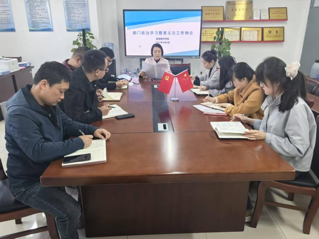 为进一步提升工作质量,推动各项工作有序开展。4月2日上午,继续教育学院召开本学期第五次政治学习暨部门工作例会,院长许梅、副院长孟红军及全体工作人员参加会议,会议由许梅主持。