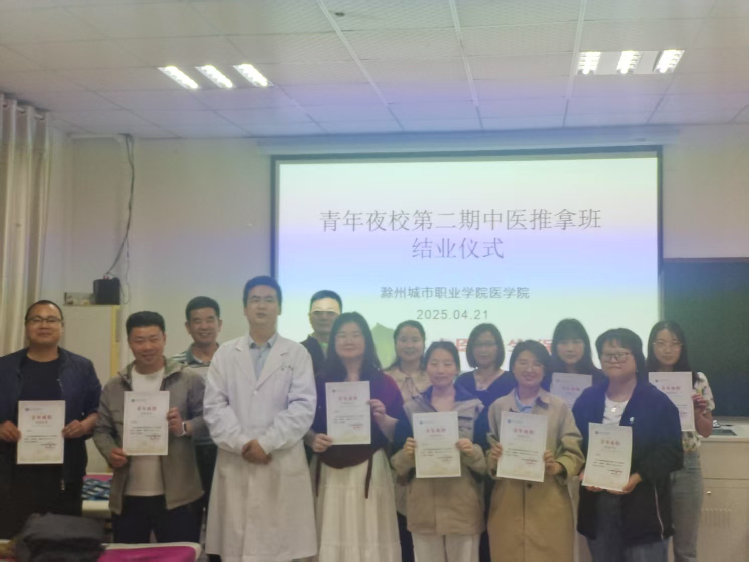本次共有140名青年参与学习,结业之际,学校为学员颁发了“滁州城市职业学院青年夜校”结业证书,这是学员们在学习过程中努力与成长的有力见证。从学员们的反馈中可知,他们在夜校收获颇丰,既掌握了实用技能知识,还结识了志同道合的伙伴,极大地丰富了业余生活。