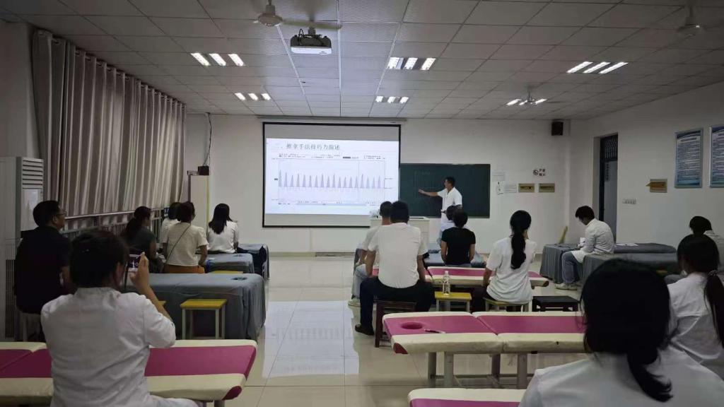 中医推拿班设于尚知楼B4-205中医康复实训室,苏伟老师围绕肩颈放松、腰背保健等实用技法展开教学,通过人体模型演示与一对一指导,帮助学员掌握穴位定位与推拿力度,不少学员表示“学会这些技法,既能给自己放松,也能照顾家人,非常实用”。