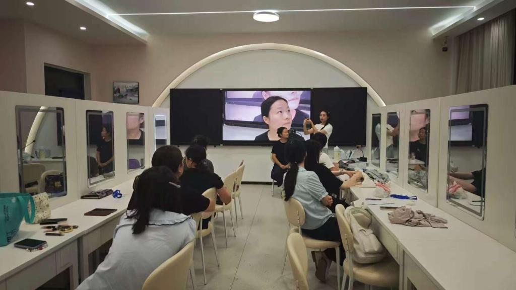 化妆造型班在润智楼205化妆造型实训室开启“变美之旅”,老师结合日常通勤、职场面试等场景,讲解妆容设计与发型搭配技巧,学员们相互实操练习,在老师的细致纠错中快速提升造型能力,期待通过形象管理展现更好的自己。