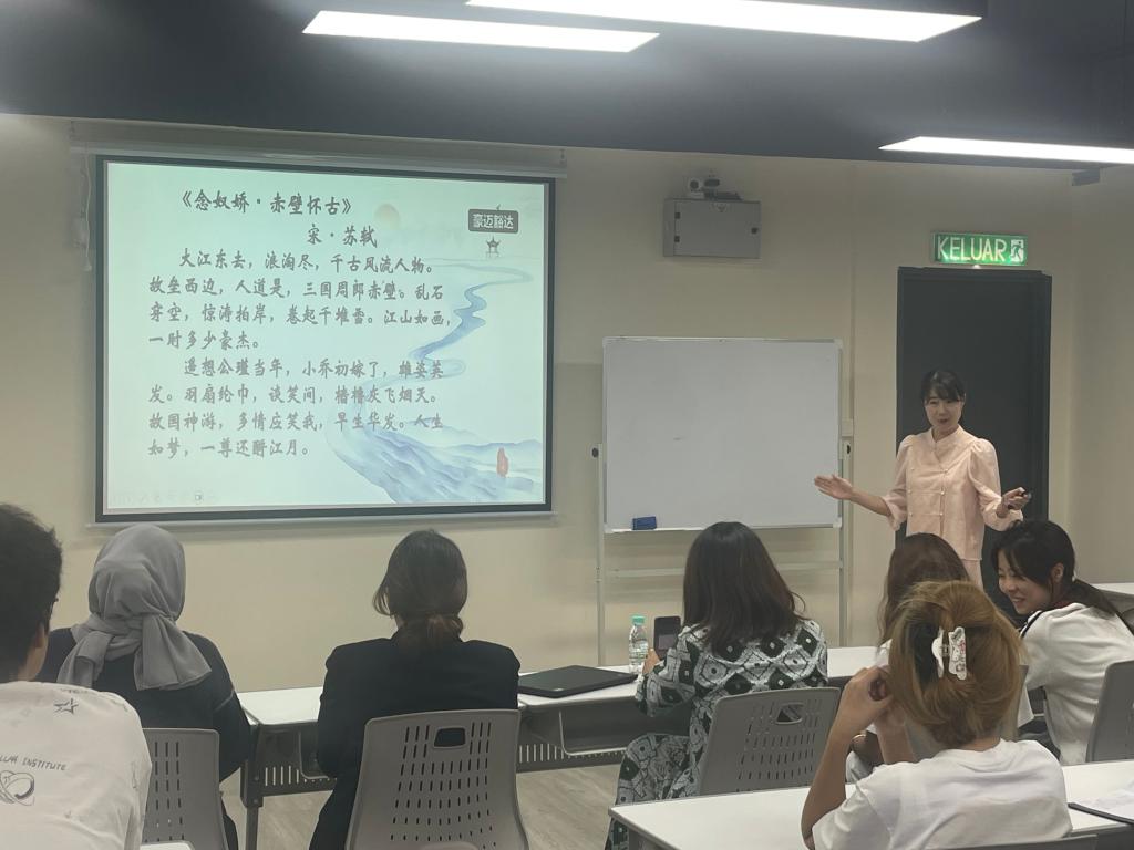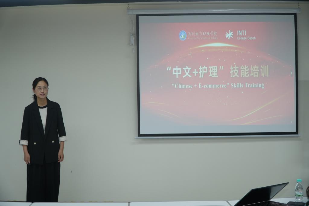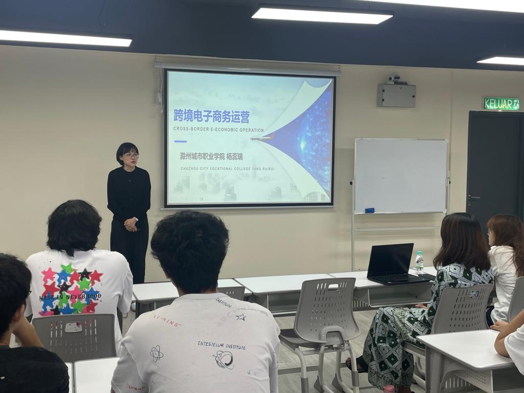 结合专业所长,研修团教师为沙巴英迪学院师生开展“中文+职业技能”分享活动。杨蕊瑞讲解跨境电商运营相关知识,周霞普及基础急救护理技能,王绪威介绍中医康复日常保健应用,叶洪珍以诗词赏析为切入点分享中华传统文化。活动中,马方师生对中国文化与专业技能表现出浓厚兴趣,双方互动热烈,交流成效显著。
