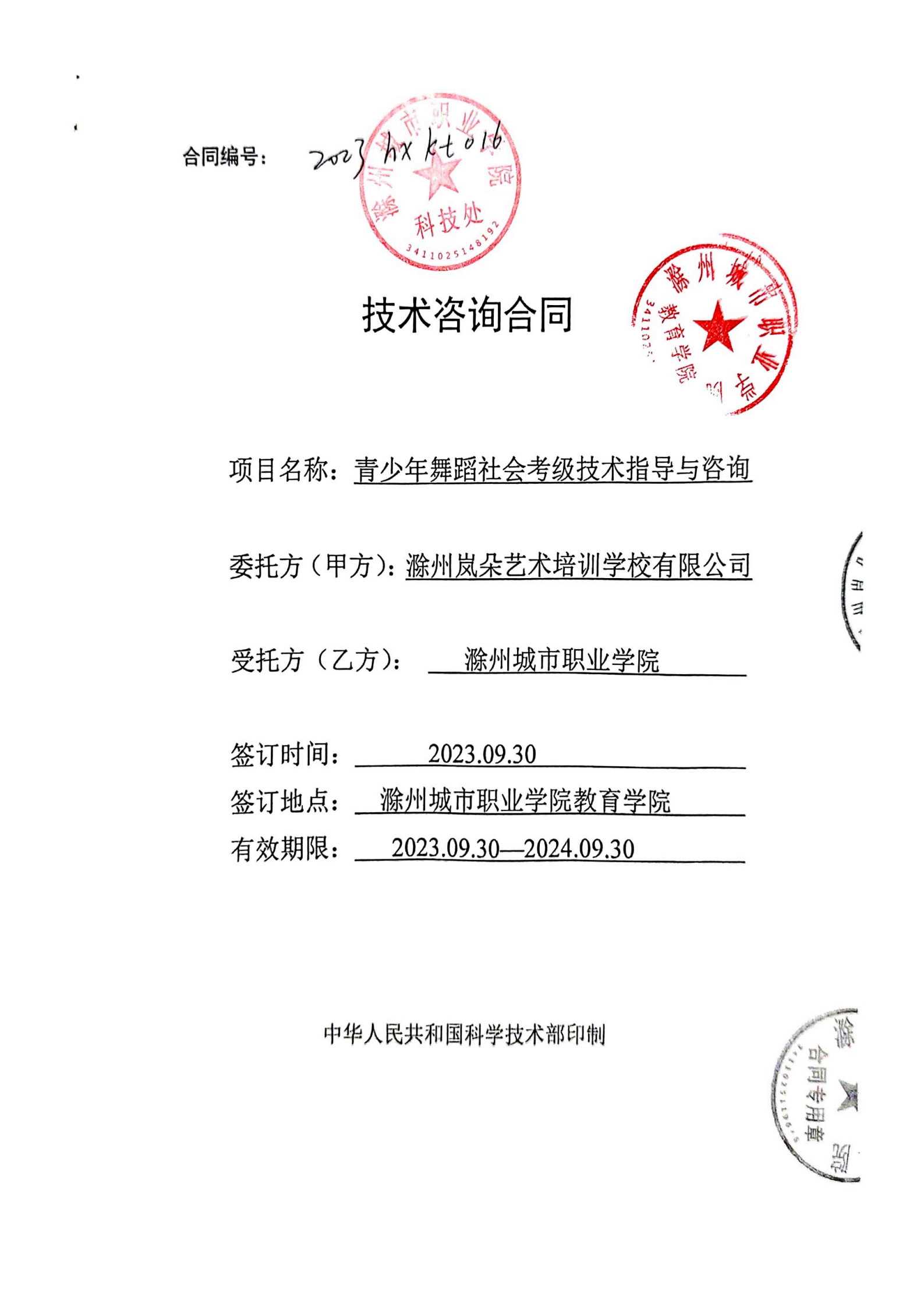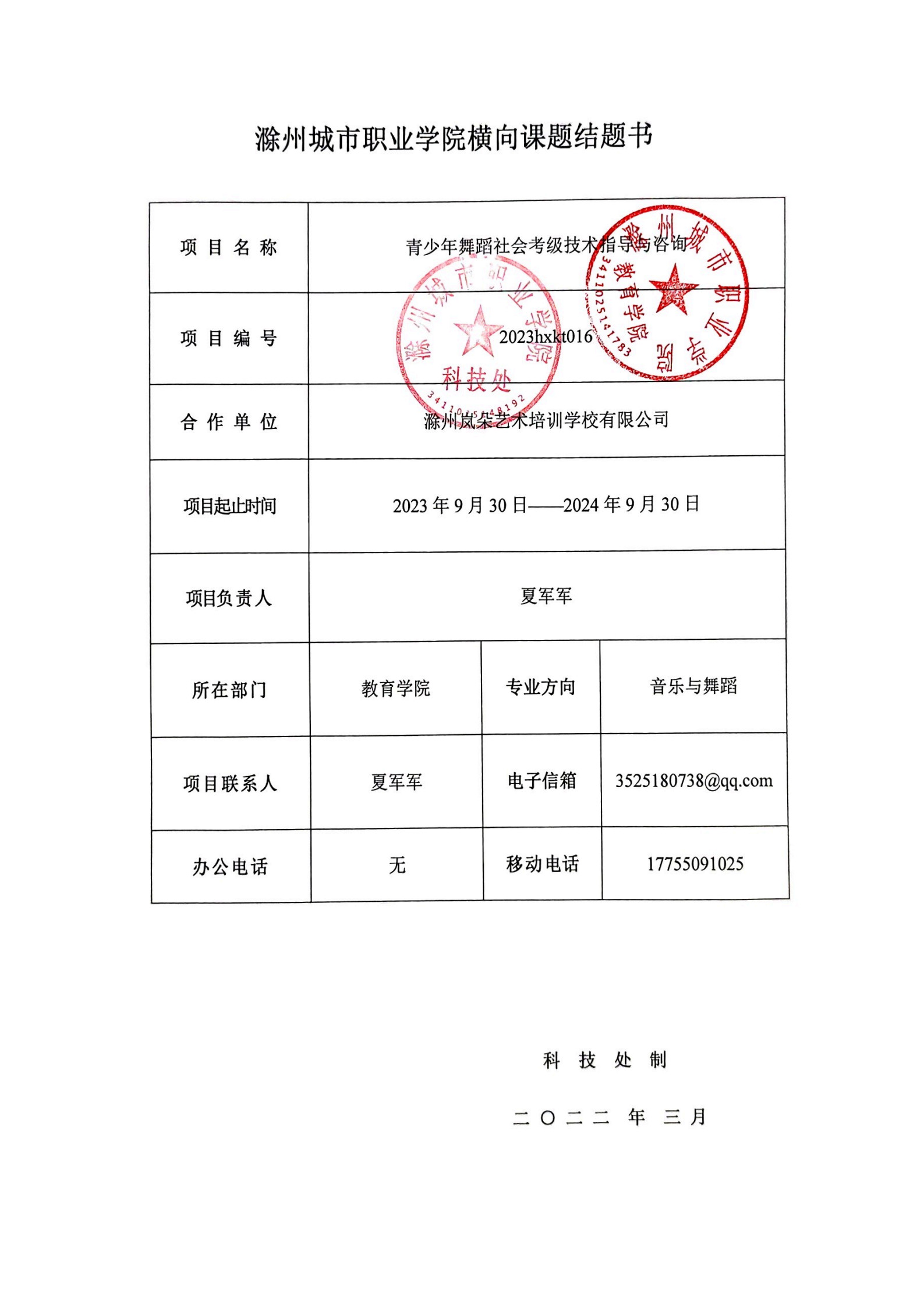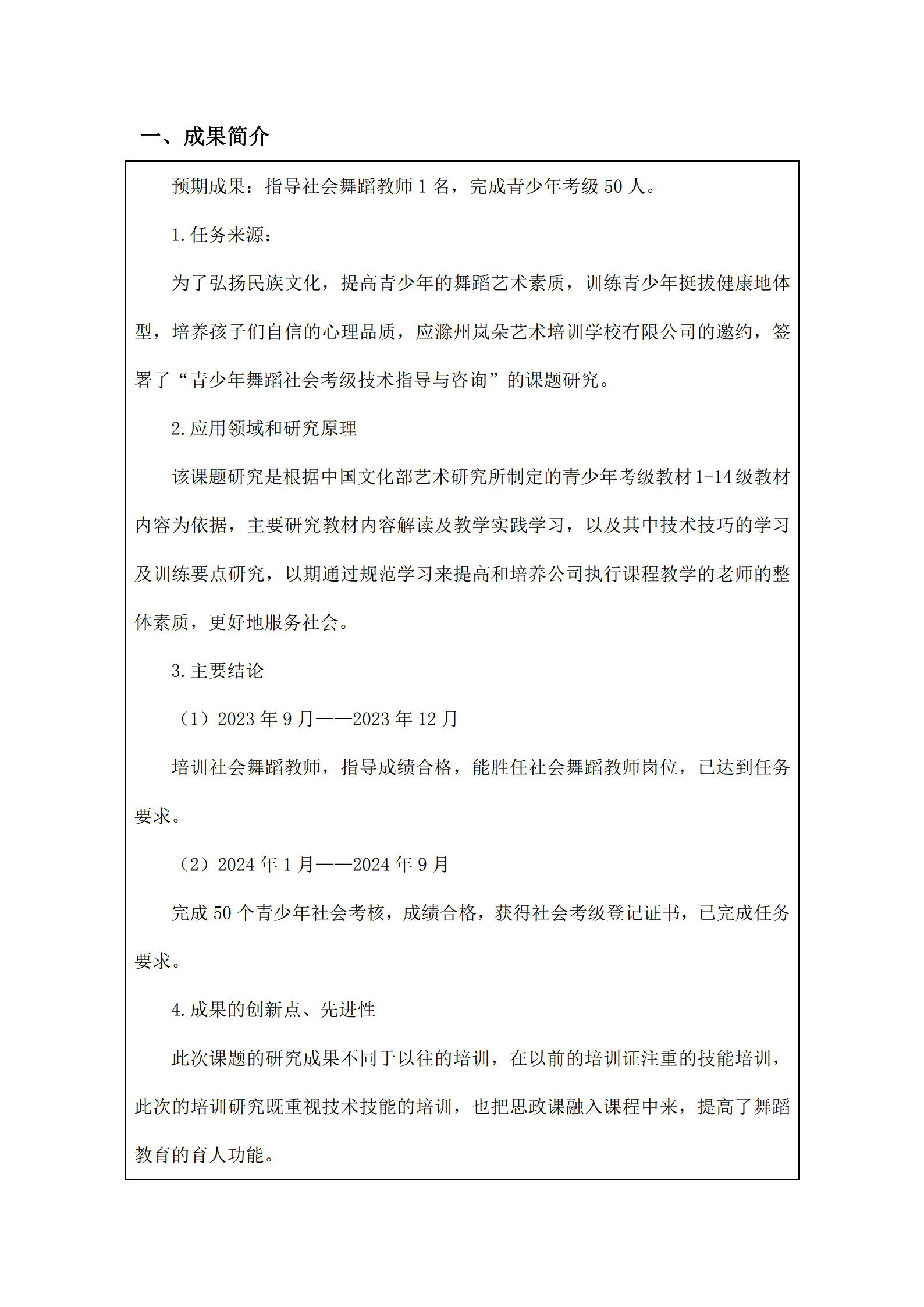 青少年舞蹈社会考级技术指导与咨询(夏军军横向课题)