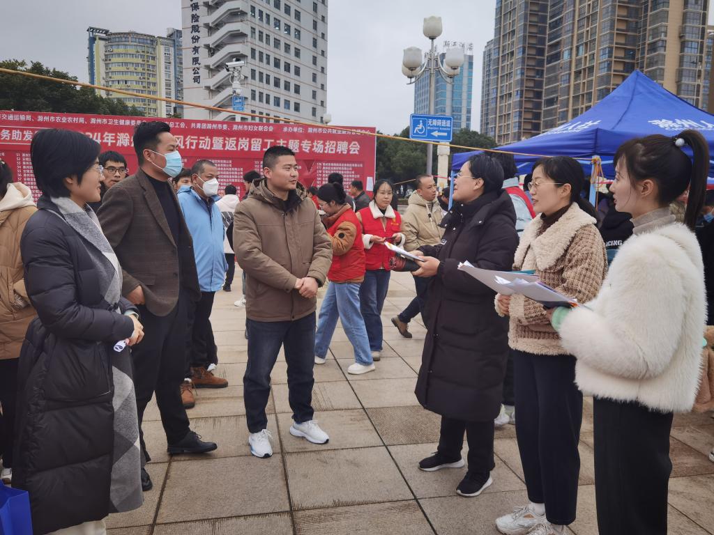2月19日下午,由滁州市人社局、交通运输局、农业农村局等7家单位联合举办的“春风送岗促就业 精准服务助发展”2024年“春风行动”暨返岗留工主题专场招聘会在市人民广场举行。医学院党总支书记周慧、医学院党总支副书记田青青率领2024届毕业班辅导员和部分学生参加招聘会活动。